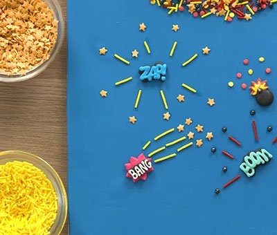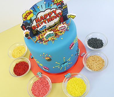 Pick and mix an explosive superhero themed topping using the following Culpitt Select cake sprinkles: