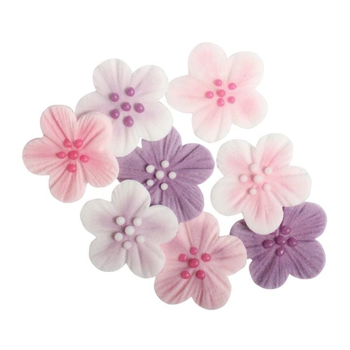 Potato starch; sugar; rice flour; emulsifiers: E414, E466; glucose, colours: E122, E129, E133