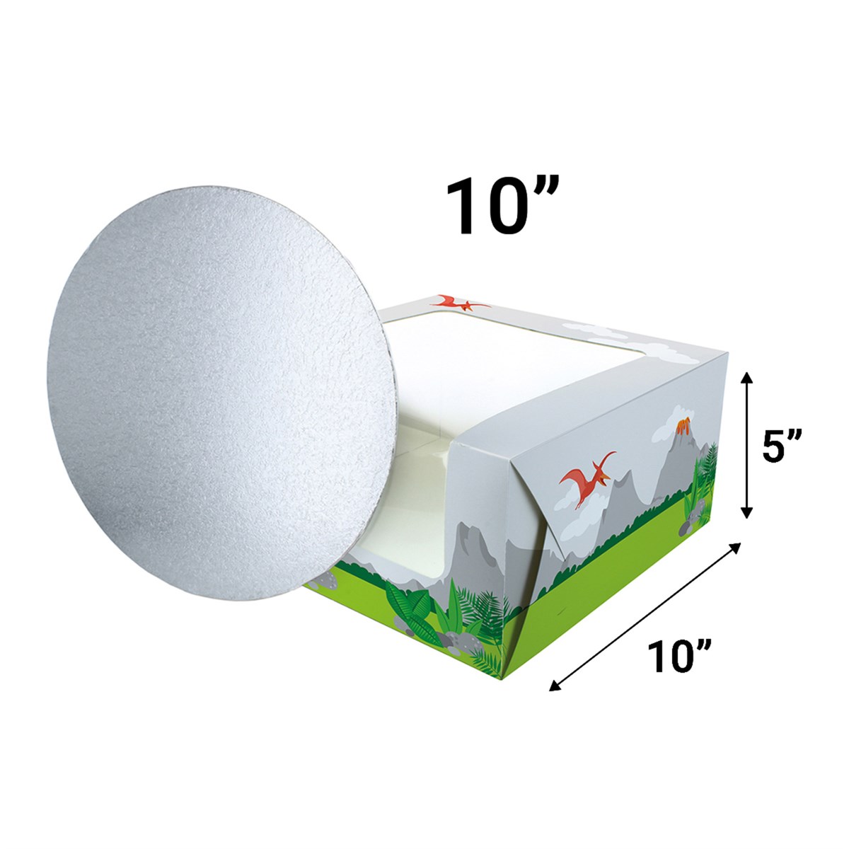 Baked With Love Printed Dinosaur 10" Windowed Cake Box and 3mm Double Thick Cake Card