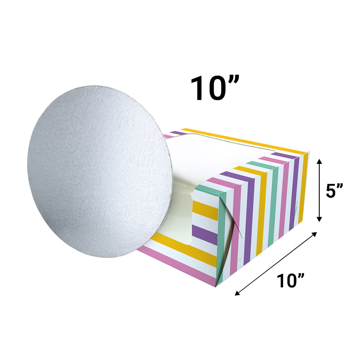 Baked With Love Printed Pink Stripes 10" Windowed Cake Box and 3mm Double Thick Cake Card