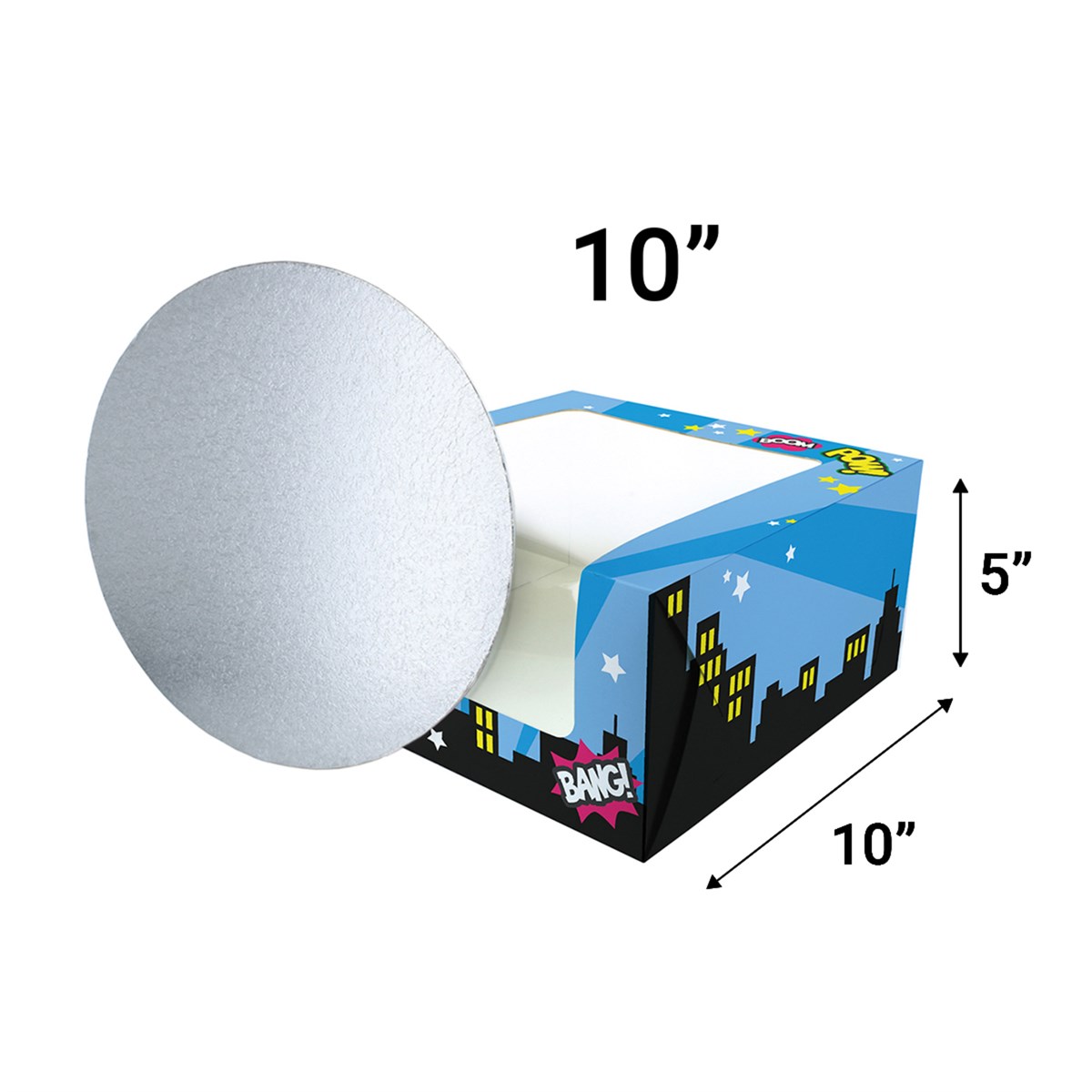 Baked With Love Printed Superhero 10" Windowed Cake Box and 3mm Double Thick Cake Card