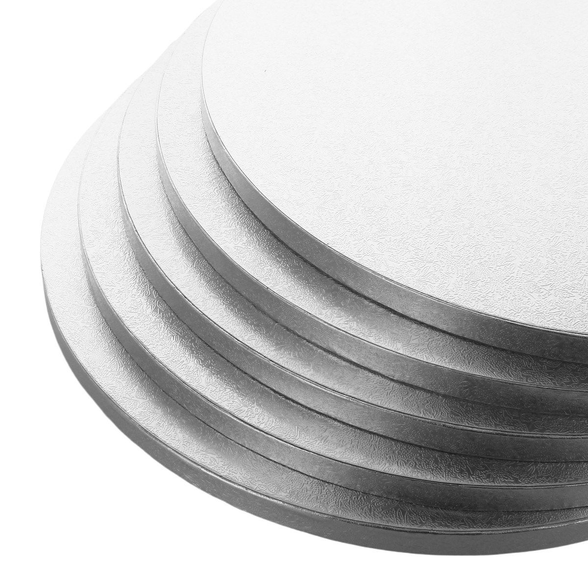 - Pack of 5 standard round silver cake boards