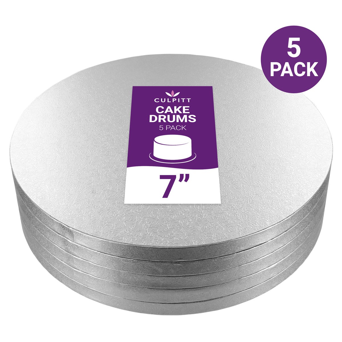 Standard 7" Round Silver Cake Drum Boards - Bulk Pack of 5