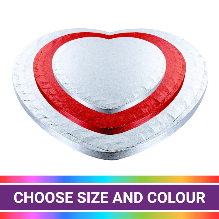 Providing a striking alternative to a traditional round or square silver board for cake display, an eye-catching heart cake drum can be coordinated to romantic themes, colour schemes, trends and special occasions. Premium cake drums can be used to present decorated sponge birthday cakes, or to reliably support cakes made with heavier ingredients such as dense fruit-filled wedding cakes.