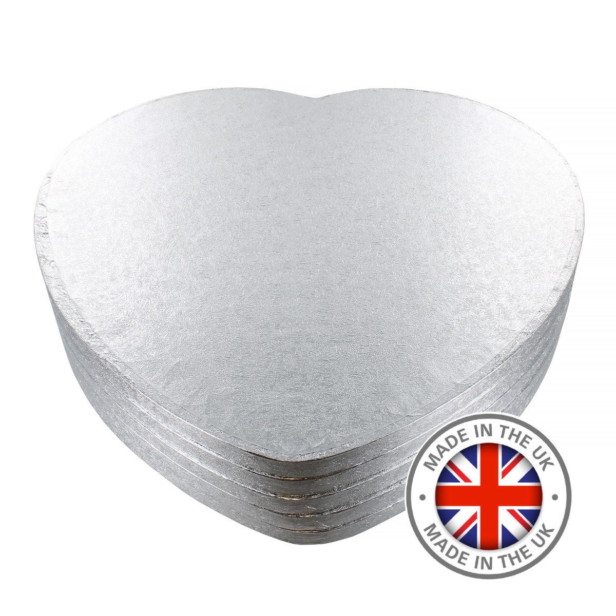Providing a striking alternative to a traditional round or square silver board for cake display, an eye-catching heart cake drum can be coordinated to romantic themes, colour schemes, trends and special occasions. Premium cake drums can be used to present decorated sponge birthday cakes, or to reliably support cakes made with heavier ingredients such as dense fruit-filled wedding cakes.