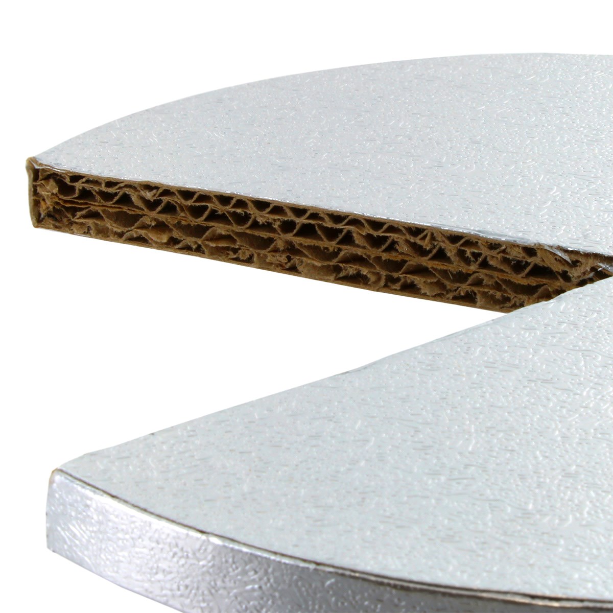 Culpitt Select 8" round cake drums are lightweight but still reliably strong. 12mm thick and made from tightly fluted corrugated board, these cake boards are a great alternative to standard cake drums. The traditional silver foil turned edge helps display cakes beautifully making them a great value choice both practically and aesthetically.