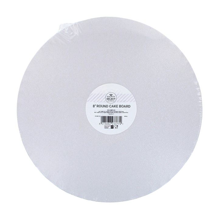 Culpitt Select White 8" round cake drums are lightweight but still reliably strong, these cake boards are a great alternative to standard cake drums. These contemporary white cake boards help display cakes beautifully making them a great value choice both practically and aesthetically.