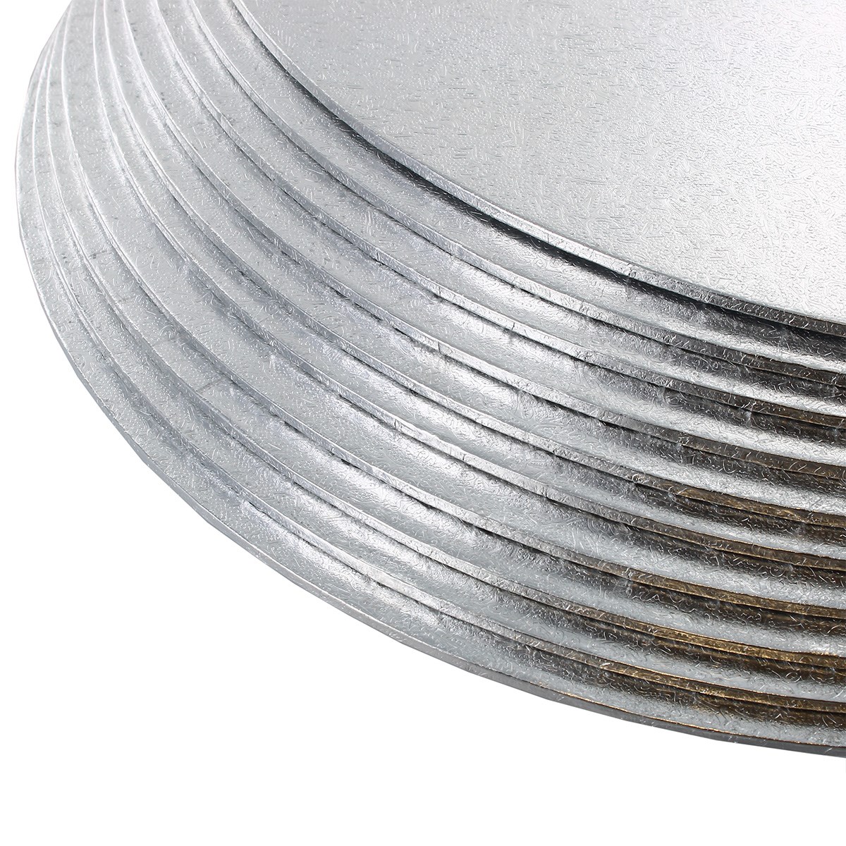 These round double thick cake cards from Culpitt Select measure approx 3mm thickness and are ideal for tiering or presenting small cakes or bakes such as cupcakes, gateaux, light sponge cakes and desserts. They offer slightly more support than single-thick cards, but are not as strong (or expensive) as hardboards or drums. These cake cards have a a variety of embossed foil finishes on the top and sides (known as turn edge) with a white paper on the base. Ideal for use in multi-tiered cakes such as wedding cakes, valentines treats, or anniversary bakes.