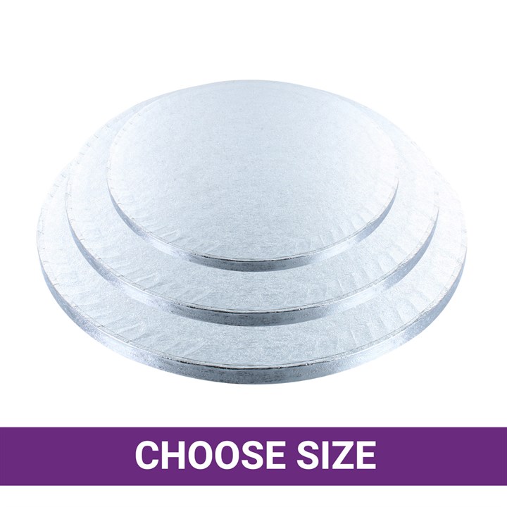 12mm thick round cake boards are also known professionally as cake drums. They are our most popular type of cake support and display because they can be used for all types of cakes.
