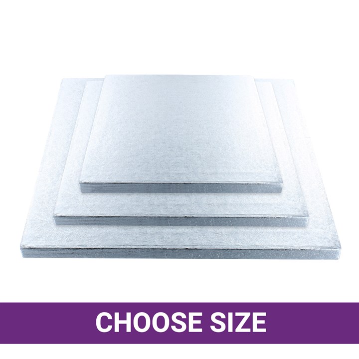 12mm thick square cake boards are also known professionally as cake drums. They are our most popular type of cake support and display because they can be used for all types of cakes.