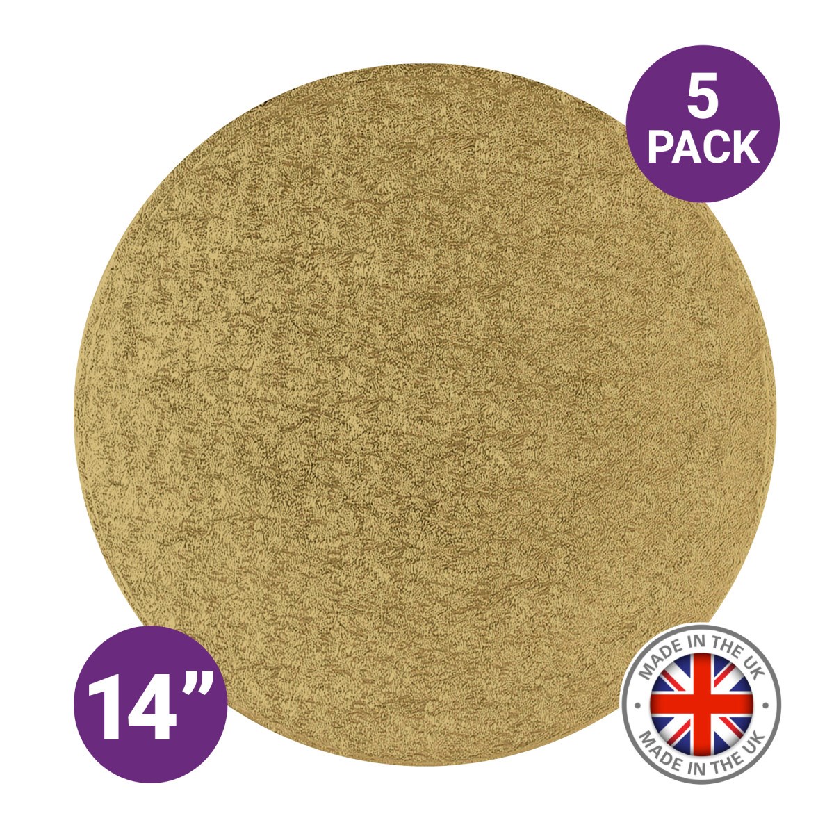 • Pack of 5 premium round gold cake boards