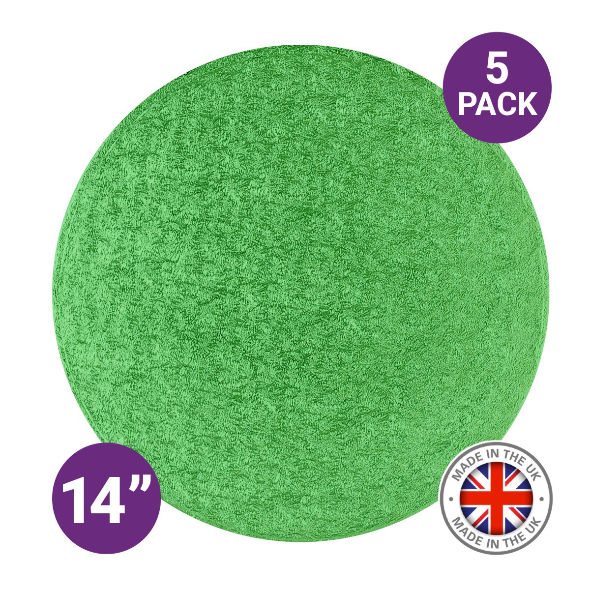 • Pack of 5 premium round green cake boards