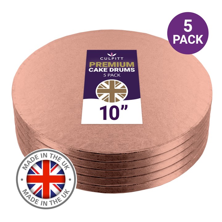 10" Round Premium Rose Gold Cake Drum Boards - Bulk Pack of 5