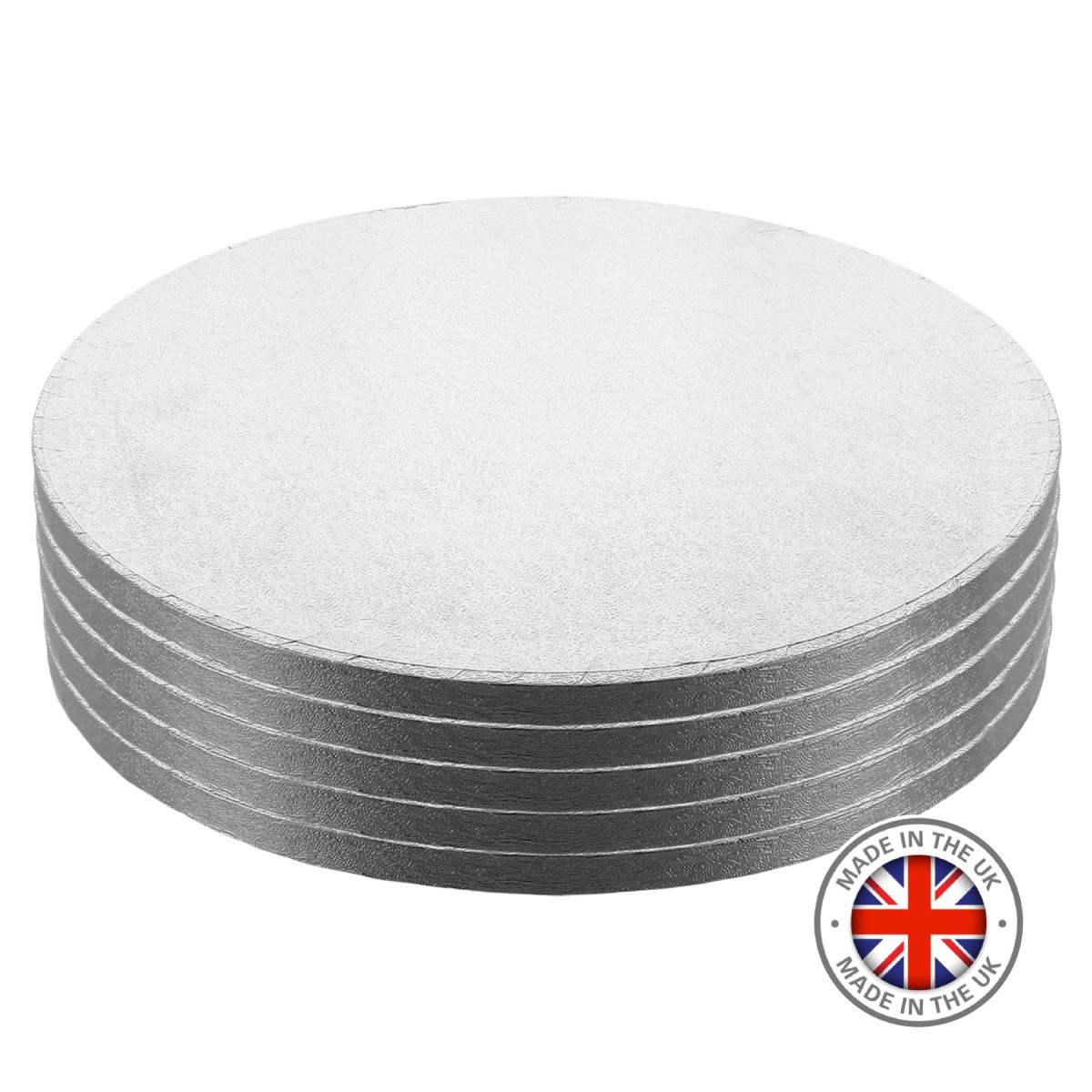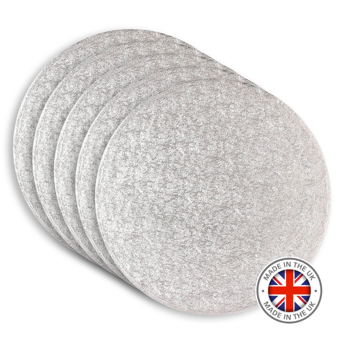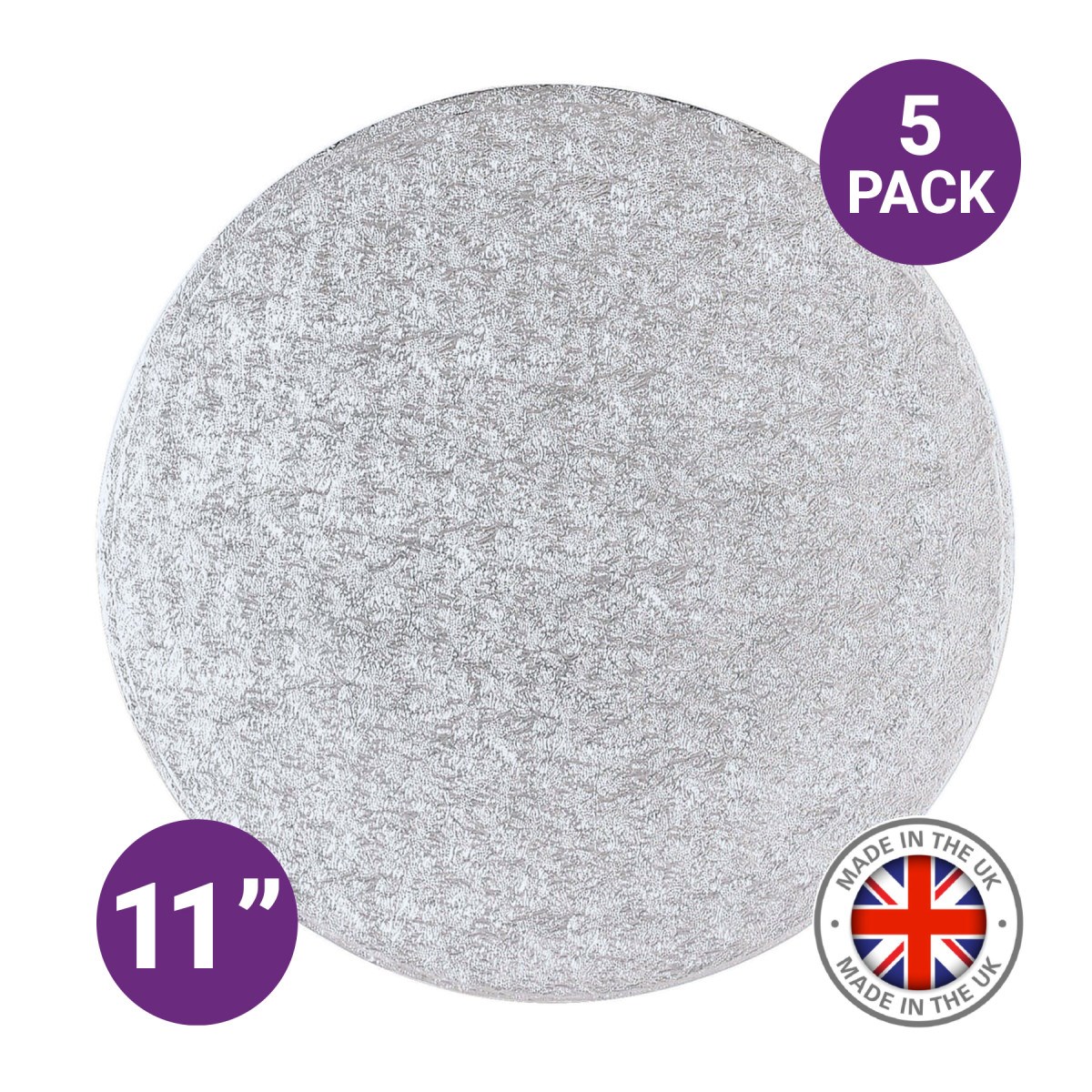 - Pack of 5 premium round silver cake boards