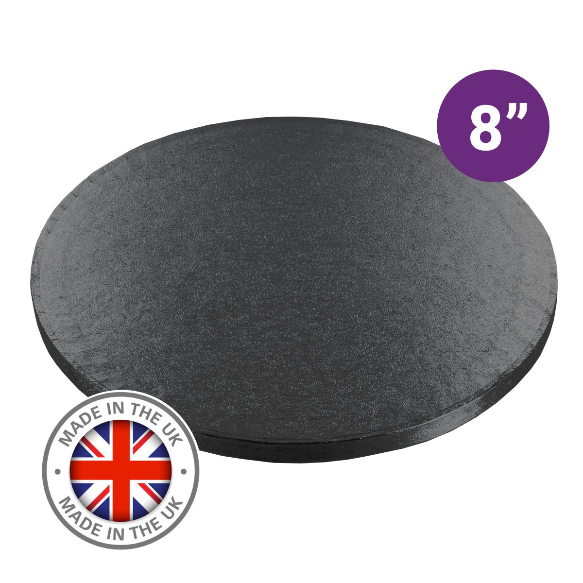 Premium 8" round black cake boards are an easy way for home bakers, hobby cake decorators and small businesses to achieve professional cake presentation. Culpitt premium cake drums offer superior strength, reliability and quality for the most exceptional homemade cakes.