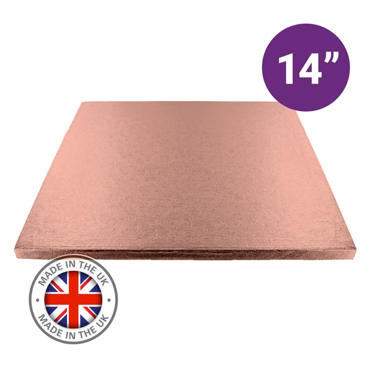 Premium 14" square rose gold cake boards are an easy way for home bakers, hobby cake decorators and small businesses to achieve professional cake presentation. Culpitt premium cake drums offer superior strength, reliability and quality for the most exceptional homemade cakes.
