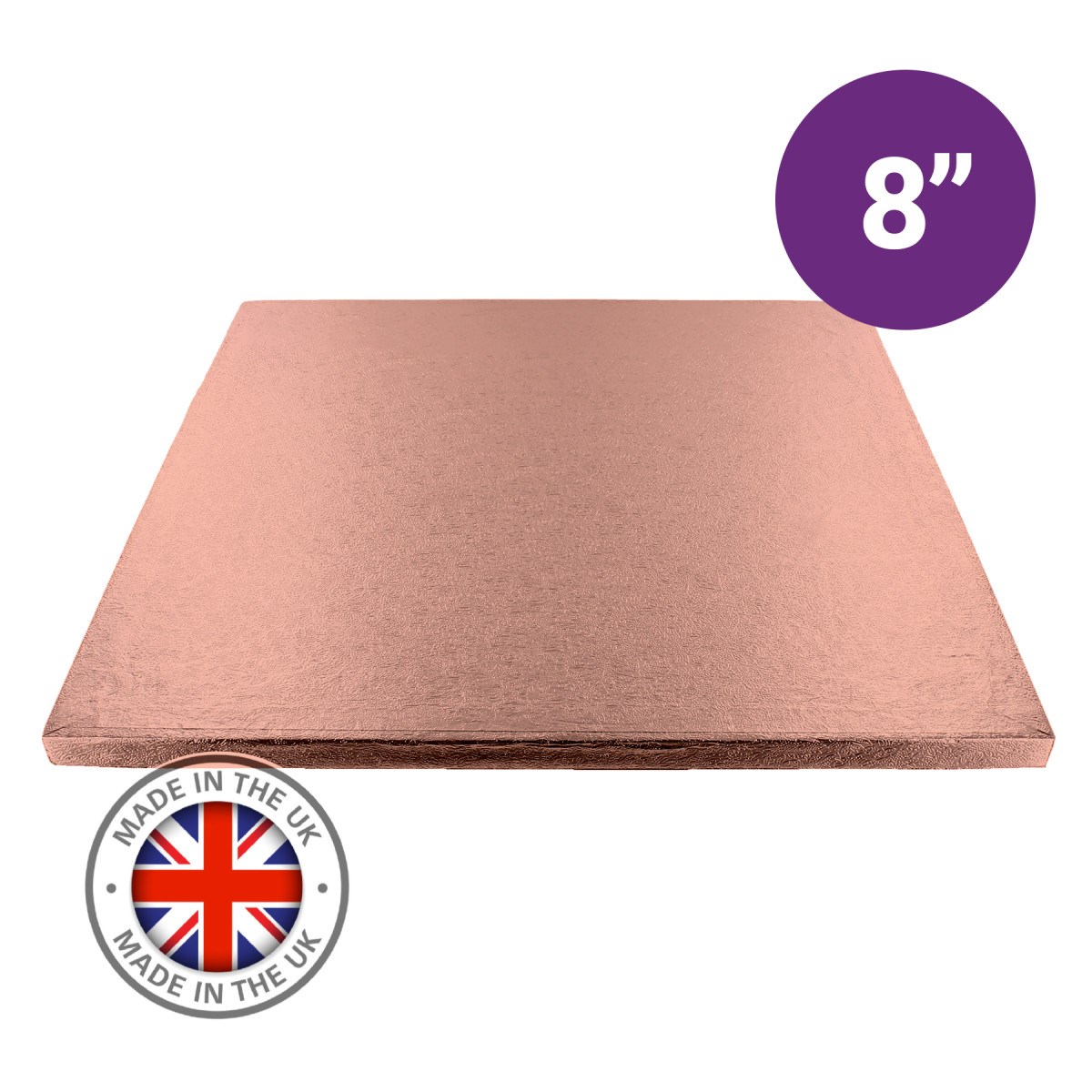 Premium 8" square rose gold cake boards are an easy way for home bakers, hobby cake decorators and small businesses to achieve professional cake presentation. Culpitt premium cake drums offer superior strength, reliability and quality for the most exceptional homemade cakes.
