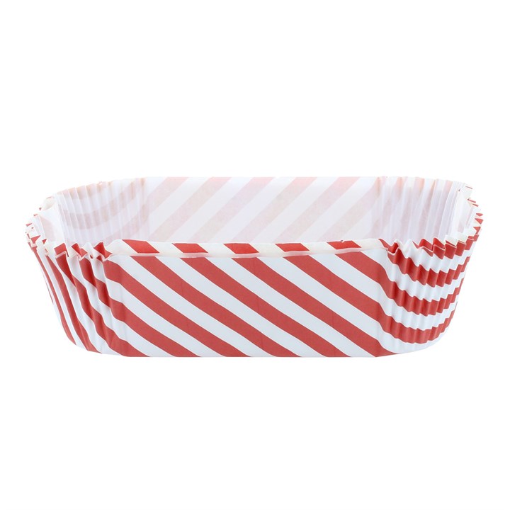 These striking red and white striped loaf liners, made with white printed greaseproof paper (45gsm) are the best way to ensure bakes are released easily from the tin.