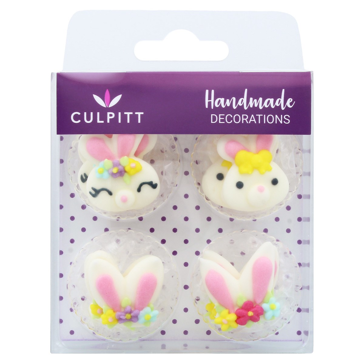 The adorable Bunny toppers are hand-piped from royal icing .Each piece measures approx. 25mm.