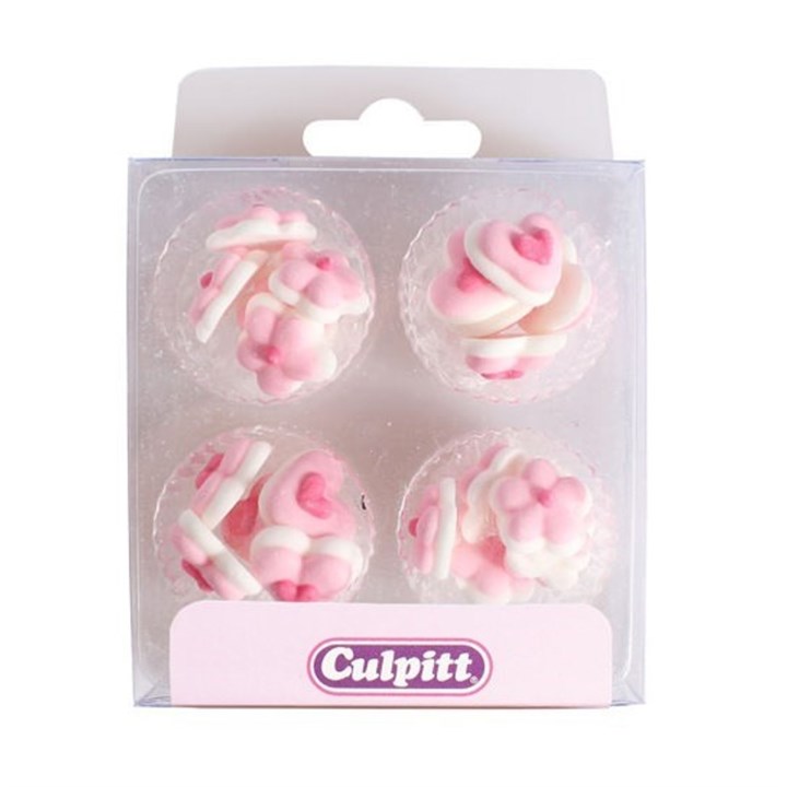 Culpitt Pink Mini Hearts & Flowers Sugar Decorations - Pack of 24