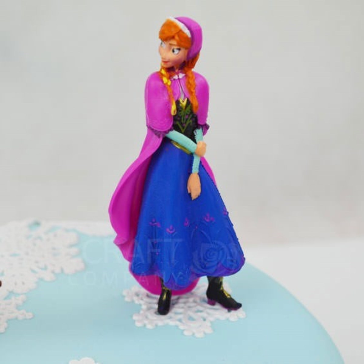 No Frozen party cake is complete without one of it's most popular characters, Princess Anna. This Frozen cake topper shows Anna wearing her signature purple hooded cloak and blue dress from the film, ready to go up the mountain!