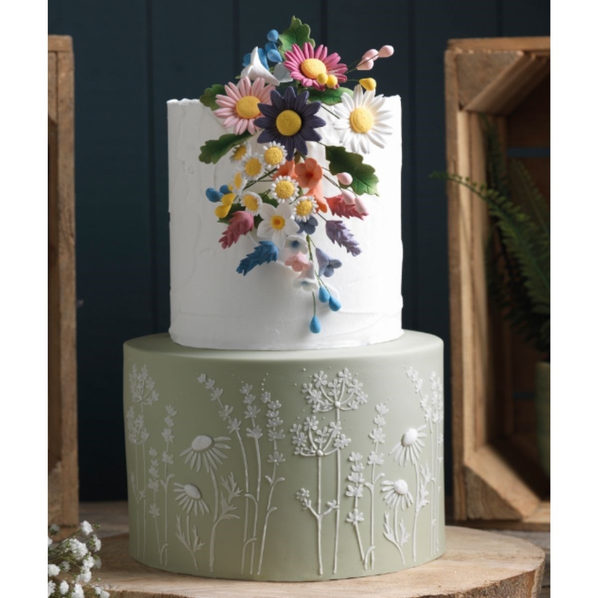 Add a splash of floral colour to your occasion cakes with this wired wildflower spray. It can be used individually as a topper for a small celebration cake, or it can be used within a larger floral design (it is recommended to buy two for this) for wedding and occasion cakes.